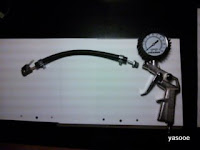 調査:タイヤゲージの30cmの黒ゴムホースが2箇所亀裂が入っておりそこから空気が漏れていた。